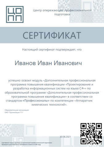 Электронный сертификат ЦОПП