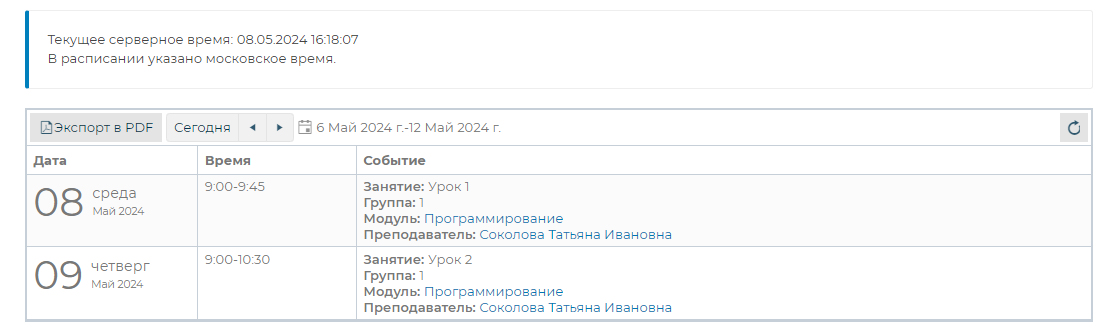 Также расписание можно скачать в формате PDF, нажав на кнопку