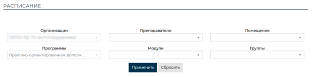 Для того, чтобы применить фильтр к расписанию необходимо выставить необходимые критерии в соответствующих полях, такие как: