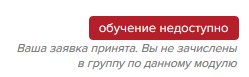 Если в процессе обучения пользователь был отчислен или заблокирован, то обучение становится недоступно с соответствующим сообщением