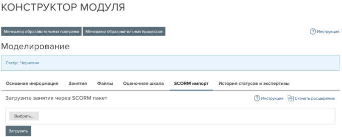 Конструктор модуля. Вкладка «SCORM-импорт»