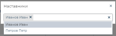 Для того, чтобы назначать/сменить наставников, необходимо нажать на кнопку [Наставники] . Во всплывающем окне выбрать из выпадающего списка нужного пользователя и после появления сообщения «Успешно» закрыть окно.