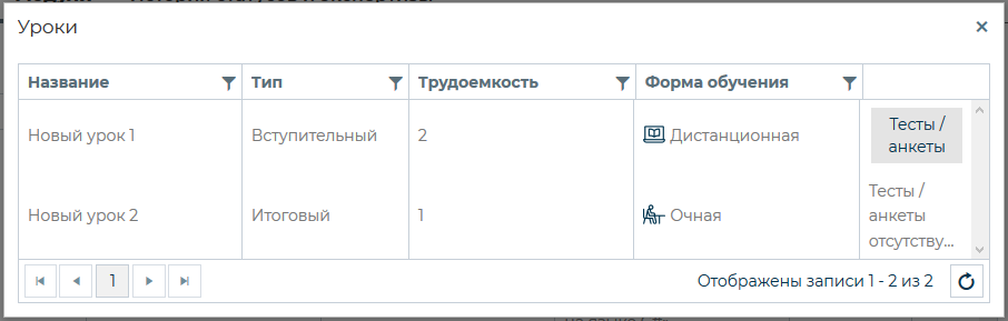 Просмотр списка уроков