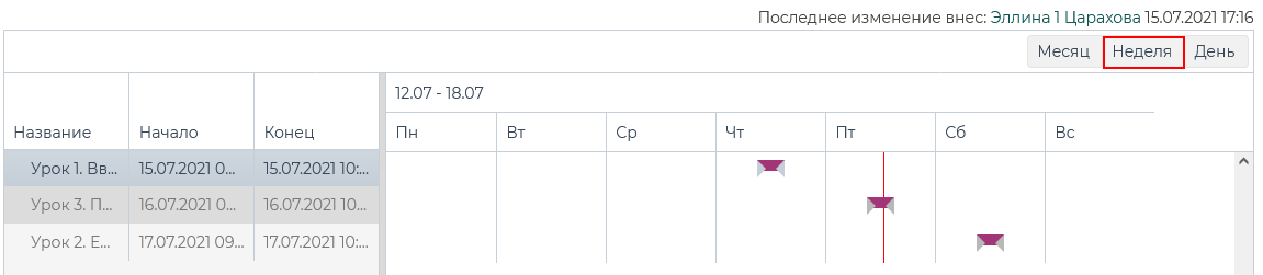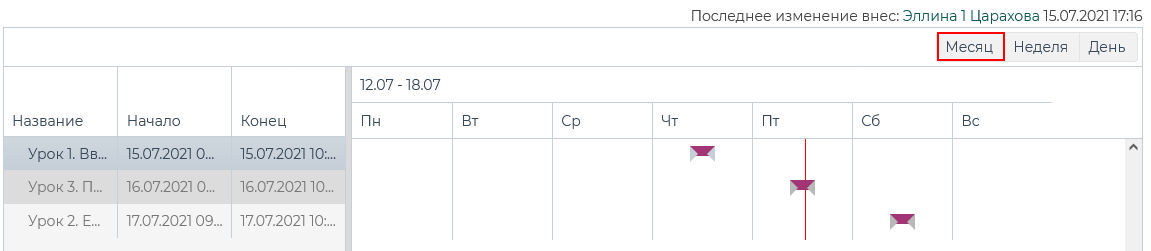 на диаграмме Ганта, соответствующему уроку.