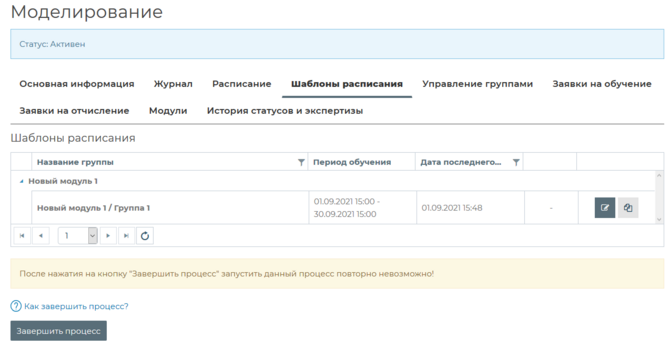 Шаблон расписания формируется автоматически после создания новой группы обучающихся.
