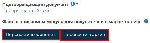 Кнопки «Перевести в черновик» и «Перевести в архив»