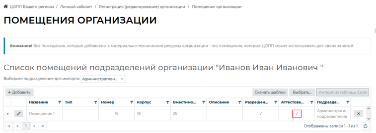 Если поставить галочку напротив «Разрешено использовать партнерам», то это означает, что данное помещение может использовать для проведения занятий ЦОПП.