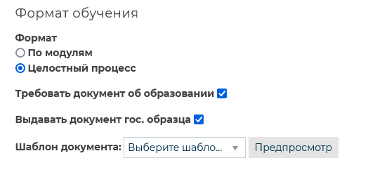 Для формата обучения по целостному процессу можно выбрать дополнительные условия.